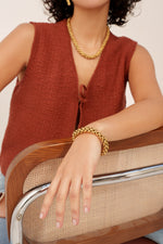 Grâce à notre procédé de dorure à l’or fin et à la base en acier inoxydable, nos bijoux conservent leur éclat pendant des années.